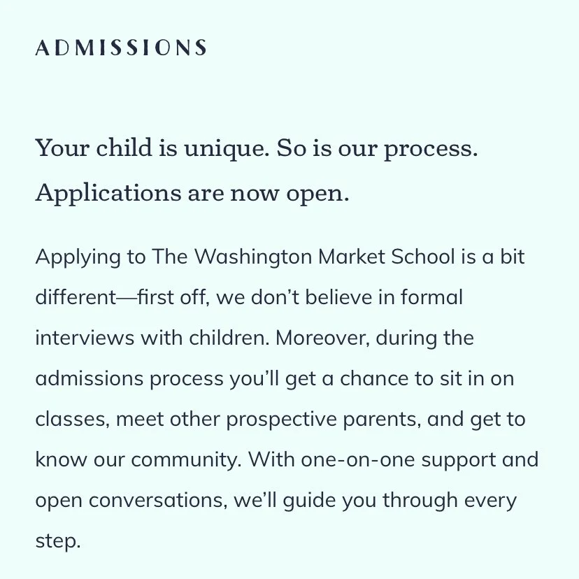 With the NYC-based agency Dan & Jason & Co., I provided new copy, a fresh take on voice and SEO-friendly content for a TriBeCa neighborhood classic, the Washington Market School.